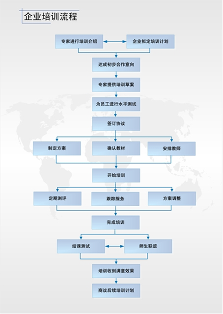 以笔试及口试的形式对参训学员进行水平测试,帮助企业选拔学员、进行分班。