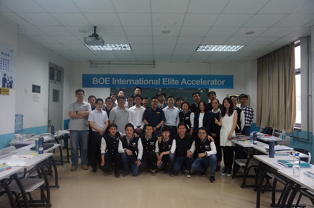 京东方国际人才训练营演讲比赛圆满结束。为向委培单位汇报培训成果,进一步激发学生学习兴趣了提升产品的附加价值,提供更好的服务,5月14日上午,京东方科技集团2016年国际人才训练营演讲比赛在主楼北344教室顺利举行。来自京东方大学的李学政副校长、京东方科技集团首席人力资源官刘凡、首席市场官APPSBU欧盛佳、首席战略市场官周玉琴和我院孙亚鹏副院长、任课教师鲁跃峰联合担任了此次演讲比赛的评委。