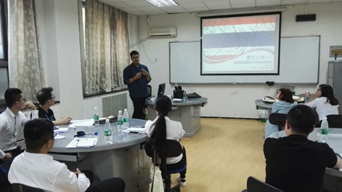 6月12日,由外语部举办的正大集团食品质量管理青年人才泰语培训班在151教室顺利开班。培训班旨在提高赴泰青年储备干部泰语日常交际能力,熟悉食品加工工作场景泰语对话交流以及跨文化交际中需要注意的文化禁忌。