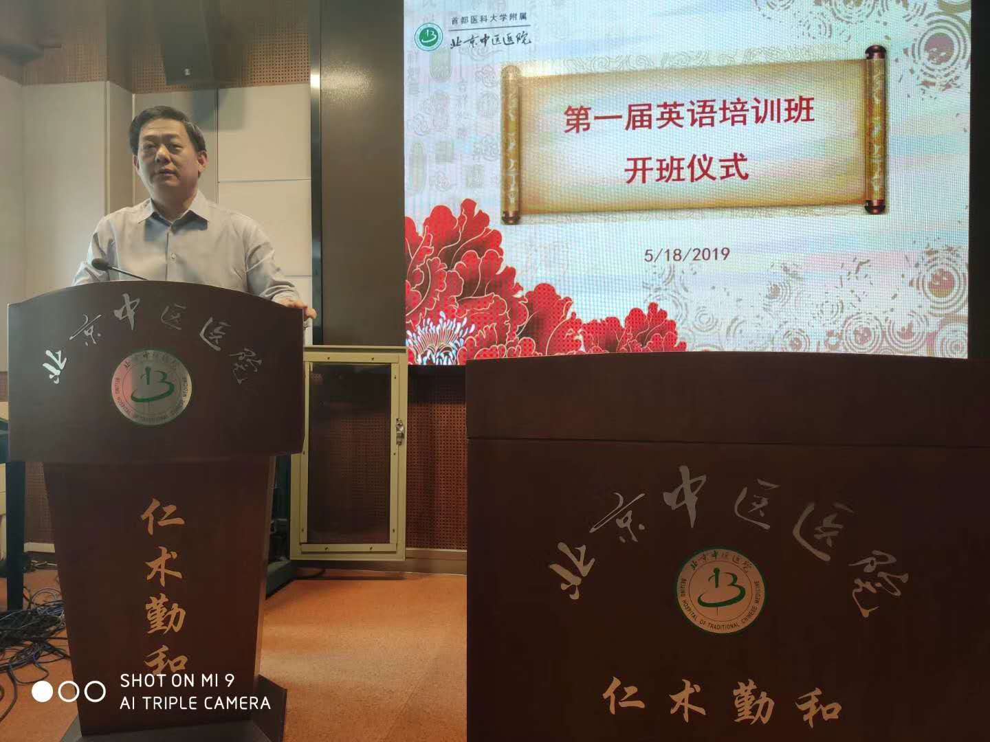 经过两个月的沟通与比较,北京中医医院最终从多家备选机构中选择北京语言大学合作,为其选拔出的临床骨干医生开展中医英语培训。2019年5月18日,在医院多媒体教室举办了第一届英语培训班开班仪式。北京中医医院院长,主任医师刘清泉出席仪式并讲话。