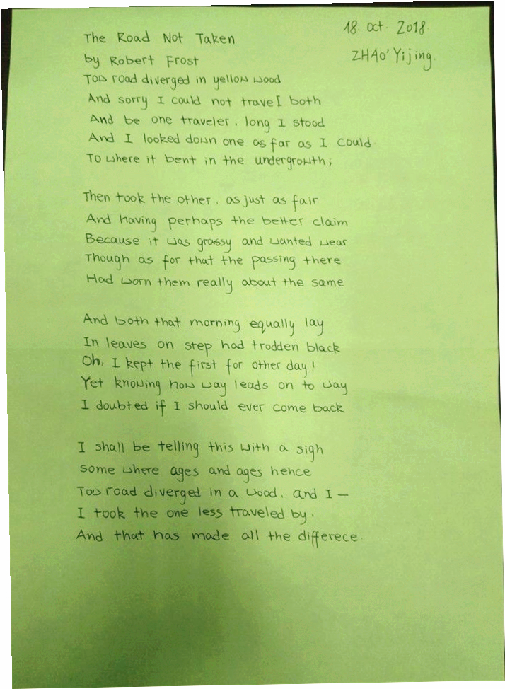 赵怡静(基础班)参赛作品 The Road Not Taken - Robert Frost