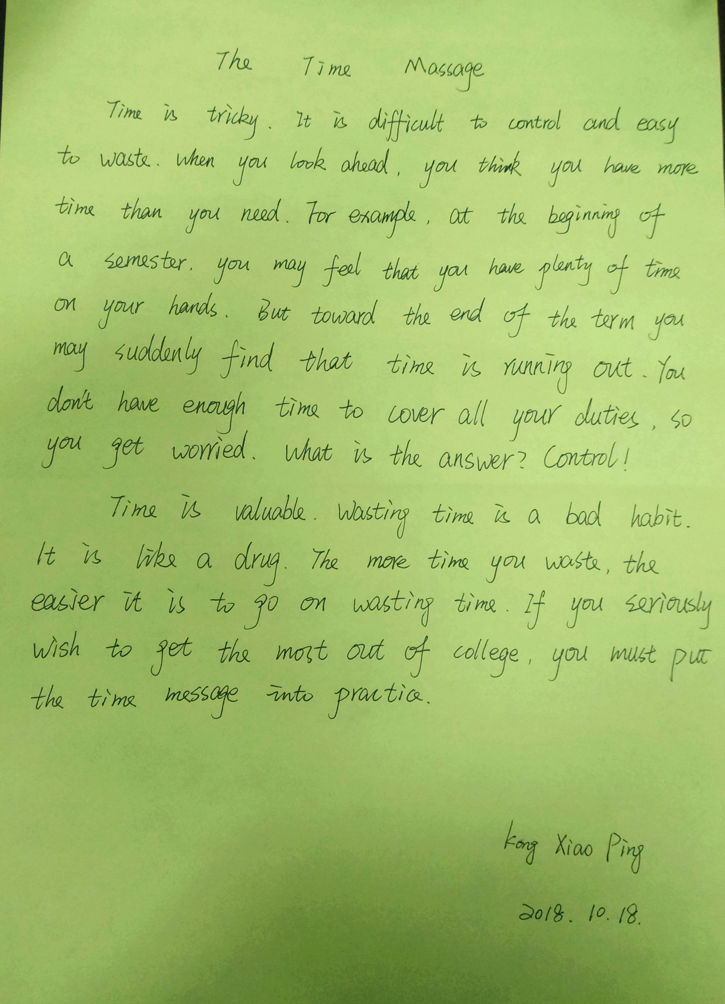 孔小平(基础班)参赛作品 The Time Massage