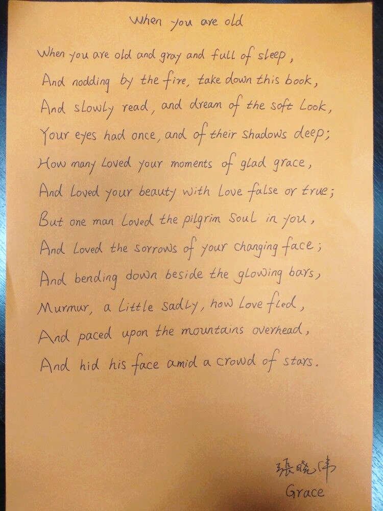张文(基础班)参赛作品 When You Are Old - William Butler Yeats
