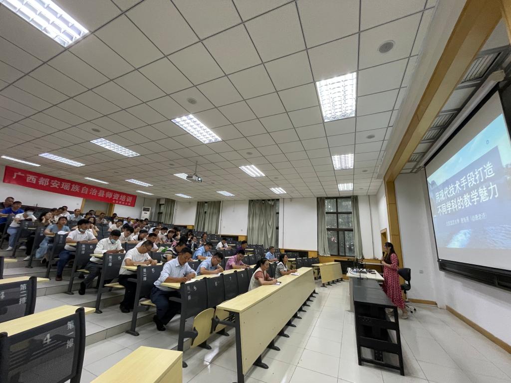 北京语言大学精准对口扶贫广西都安瑶族自治县,专门派驻老师到当地进行扶贫工作。除了经济上的扶持,我们也做了大量的工作,来改善当地的教育教学水平。通过培训提高师资的理论实践水平,更有效地帮助当地学生,让学生们得到更科学的教育指导,巩固扶贫目标。